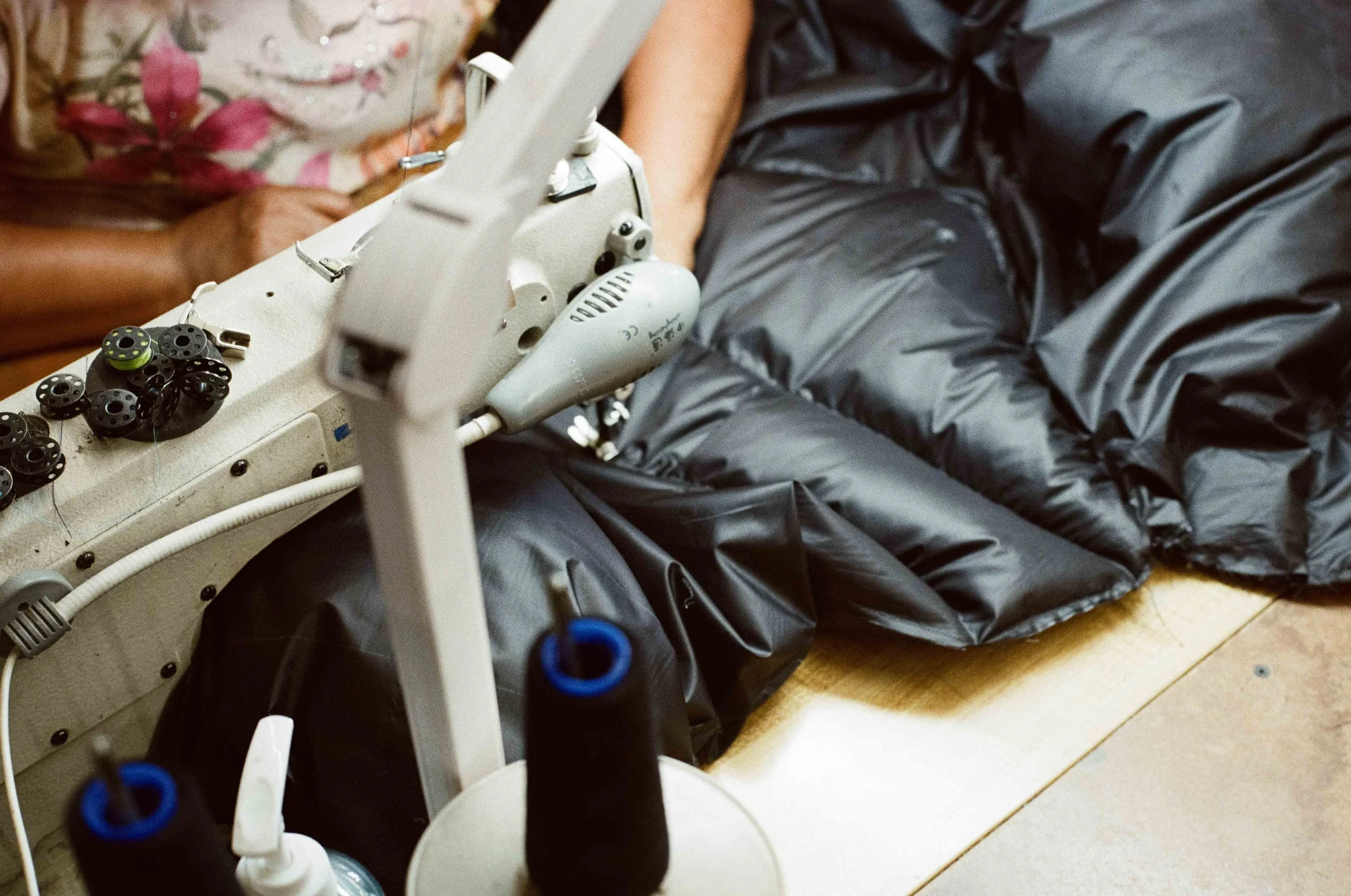 This anorak is made entirely in the East Bay, from design and pattern-making to cutting, sewing, down filling, and quilting.